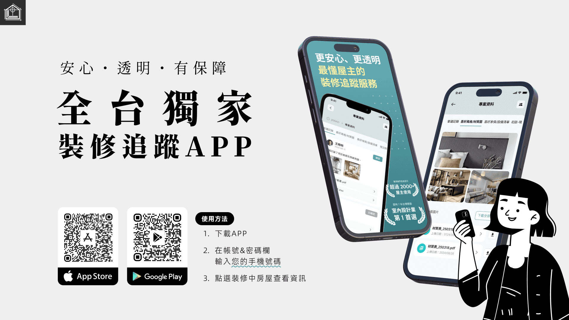 易裝修用戶團隊可享免費的業主版APP,全台獨家開發,讓您的業主輕鬆參與裝修全程,設計師們再也不用拼命轉傳資訊,簡單共享專案動態