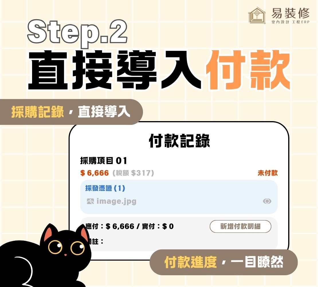 僅需確認付款進度,再自行新增付款明細