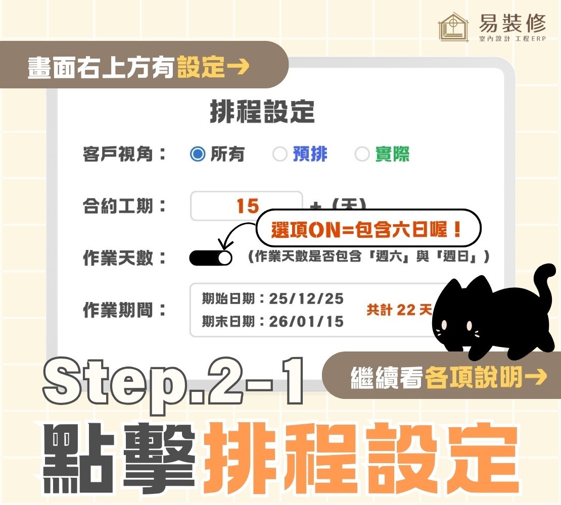 .開啟本功能:工期會包含六日,更真實反映實際施工期